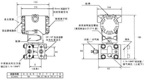 過程溫度極限 | 充硅油 | -40~104℃ |